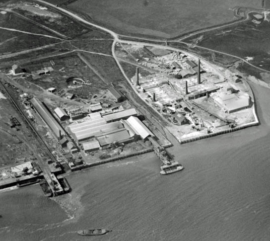 Sometimes referred to as Onward Works. The Onward company was floated in 1/1874, and the plant was constructed with nine bottle kilns, capacity 180 t/week. The company was bankrupt in 1879 and the plant was auctioned and bought by Weston & Co. The Onward company was liquidated in 1883. Westons had previously made Roman Cement and later Portland cement at Millwall. The plant continued to be known locally as "Onward". The plant was reconstructed with nine small chamber kilns (capacity 180 t/week). Three more sets of three were added – 85 t/week around 1881, 95 t/week around 1888 and 75 t/week around 1899. The plant used water transport, although a rail link was later made. After closure, the site stood derelict until in the 1930s it was absorbed into the adjacent Britannia Lead Works. It is currently under port facilities.